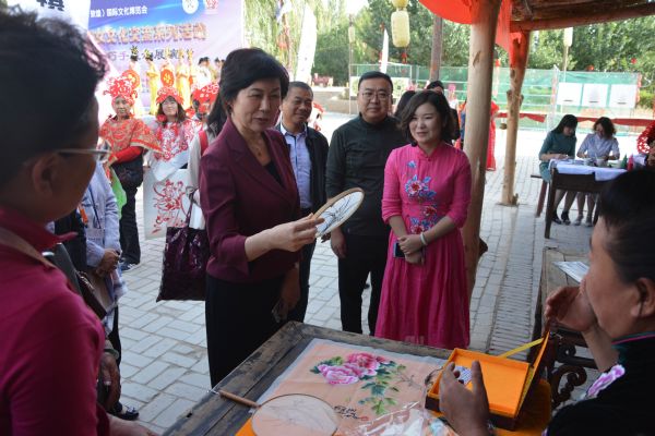 9月26日下午4時,甘肅省婦聯(lián)黨組書記、主席周麗寧一行來到月牙泉小鎮(zhèn),視察景區(qū)中心街正在舉行的“首屆婦女文化交流系列活動——隴原巧手展示展演”,認(rèn)真觀摩了來自全國各地手工編織界的業(yè)內(nèi)人士及“巧手們”的指尖技藝。甘肅萬華實(shí)業(yè)集團(tuán)總經(jīng)理、敦煌千年古城文化發(fā)展有限公司董事長牛新偉,甘肅萬華實(shí)業(yè)集團(tuán)副總經(jīng)理宿曉中陪同考察。