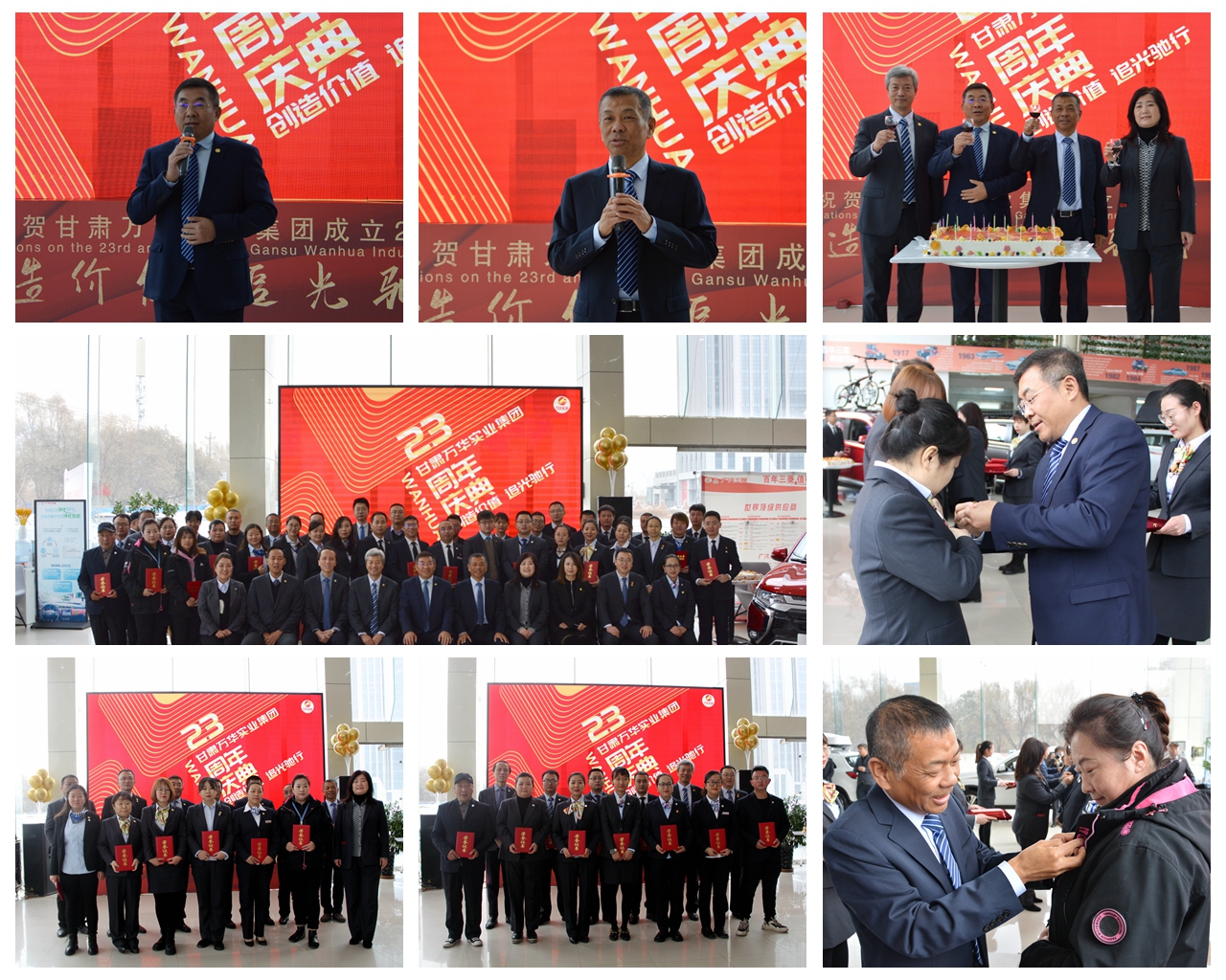 12月10日10時38分,甘肅萬華實業(yè)集團(tuán)舉辦成立23周年紀(jì)念活動。甘肅萬華實業(yè)集團(tuán)董事長牛新民,總經(jīng)理牛新偉,執(zhí)行副總經(jīng)理魏敏娟,萬華集團(tuán)副總經(jīng)理、開發(fā)部總經(jīng)理杜牧拉等集團(tuán)下屬各單位高管,蘭內(nèi)公司新晉老員工和各單位員工代表來到甘肅萬華三菱展廳為慶典祝福加持,共同見證萬華砥礪奮進(jìn)、行穩(wěn)致遠(yuǎn)的23載征程。